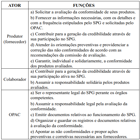 As funções de cada ator no SPG estão descritas no Quadro 2.