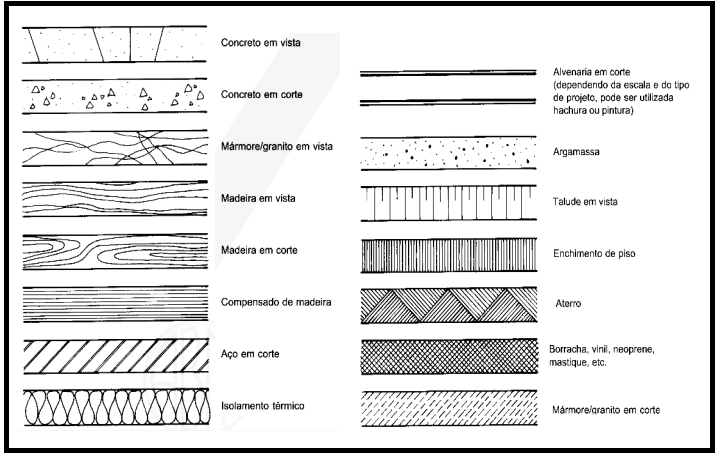 Representação dos materiais mais usados