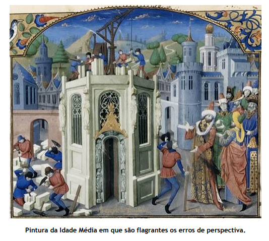Representação tridimensional não verdadeira. Enquanto tais fundamentos matemáticos não foram descobertos, a arte de representar objetos tridimensionais no plano bidimensional ficou entregue às tentativas e aos erros subjetivos cometidos por cada cultura e até modernamente, ou como forma de expressão, como vemos num Picasso, ou por falta de cultura acadêmica, como vemos na Arte Naïf: