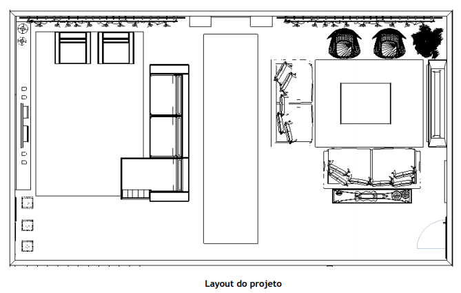 Assim inicia-se a proposta do projeto com layout de cada ambiente, desenhando em planta todos os móveis e elementos que foram solicitados no reconhecimento das necessidades do cliente, bem como sugestões e detalhes propostos pelo profissional. São apresentados os projetos através de plantas baixas, com layout feito à mão ou computador, sendo possível para o cliente visualizar os ambientes de cima, analisando todos os espaços e todos os itens existentes no projeto de interiores para que assim sejam discutidas as possibilidades e saber o que fica e o que sai dessa proposta inicial. Nesta hora é possível saber se é realmente aquilo que o cliente deseja, pois nesta hora ele consegue visualizar melhor a proposta. São feitos quantos layouts forem necessários até que seja possível chegar ao resultado esperado.