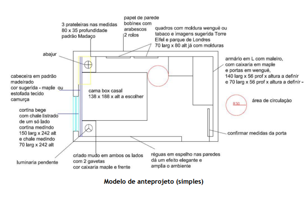 Após tudo isso é levantado os dados de cada ambiente a ser projetado, como medidas e os projetos estrutural, hidráulico e elétrico que sejam pertinentes ao projeto de interiores.