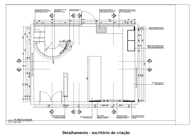 • Elaboração de plantas, elevações, detalhamento de elementos construtivos não estruturais – paredes, divisórias, forros, pisos (alterações na estrutura construtiva exige a contratação de um Arquiteto ou Engenheiro), layouts de distribuição, pontos de hidráulica, energia elétrica, iluminação e de comunicação e design de móveis e definição de paisagismo e outros elementos;