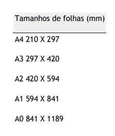 Dimensões das folhas