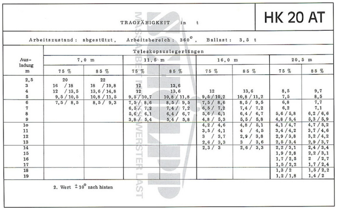 - Tabela de Cargas de Guindaste com Contrapeso 2/70;