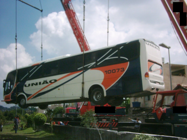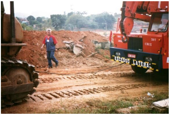 Guindaste rebocado por trator em terreno desfavorável à movimentação