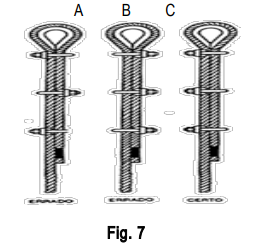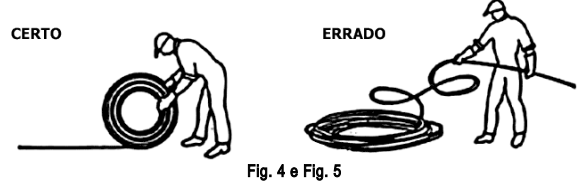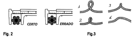 02. O número de voltas do cabo deve ser adequado à capacidade do equipamento e seguir a tabela de carga fornecida pelo fabricante.