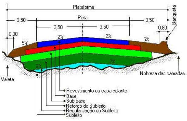 A nomenclatura descrita a seguir refere-se às camadas a aos componentes principais que aparecem numa seção típica de pavimentos flexíveis e rígidos.
