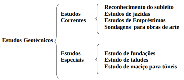 É a parte do projeto que analisa o comportamento dos elementos do solo no que se refere diretamente à obra. Os estudos geotécnicos, de um modo geral podem ser assim divididos: