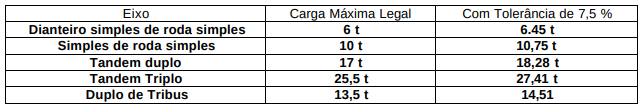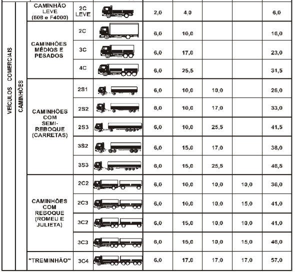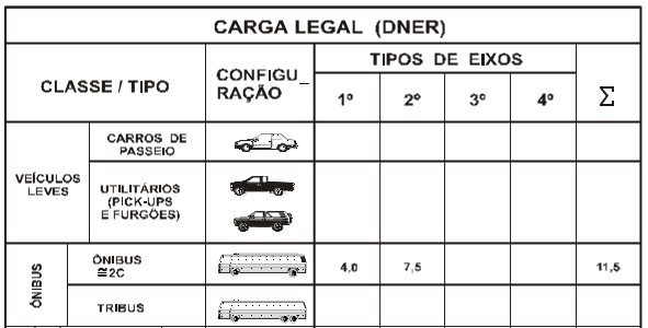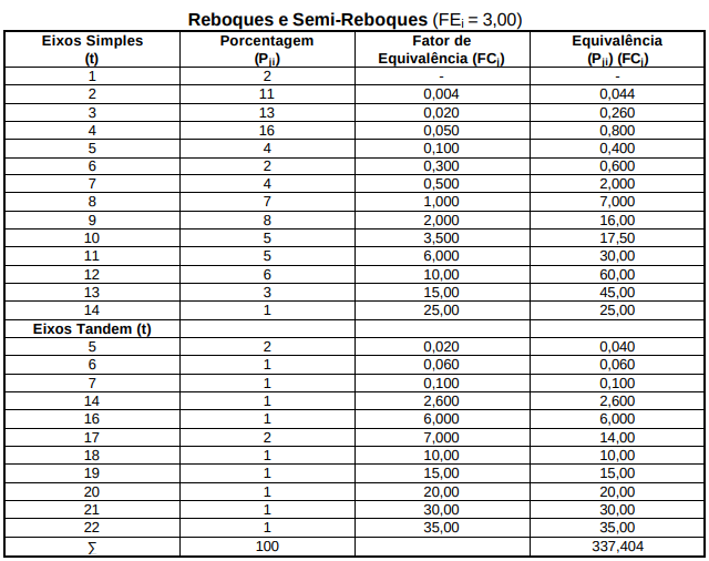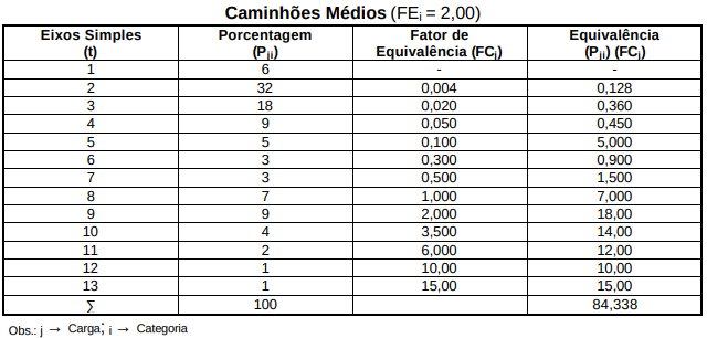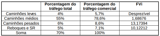Obs.: Consideram-se desprezíveis as repetições de eixo devidas as cargas de carros de passeio e caminhões leves.