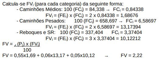 - Calcular os fatores de veículos (FV) de acordo com os fatores de equiv. do DNER.
