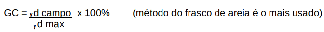 O grau de compactação é encontrado através da seguinte relação: