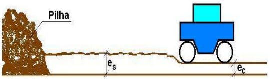 Os tratores produzem o material na jazida e armazenam numa praça. As carregadeiras retiram o material da praça e carregam os caminhões. Estes últimos transportam o material da jazida até a pista, descarregando em pilhas.