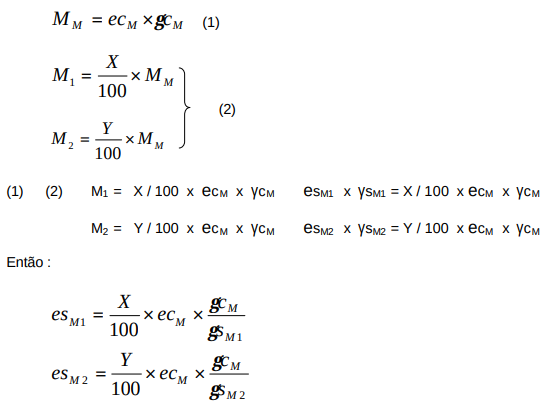 Para o caso de dois ou mais materiais (mistura) a espessura solta pode ser calculada da seguinte forma: