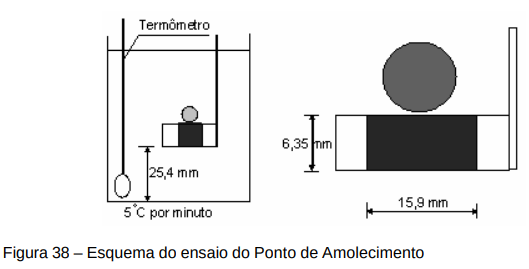 b) Ponto de Amolecimento - método do anel e bola (NBR 6560):