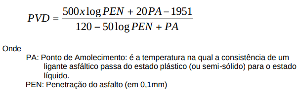 - Para PVD < (- 2): Asfaltos que amolecem muito rapidamente com o aumento da temperatura e tendem a ser quebradiços em baixas temperaturas.
