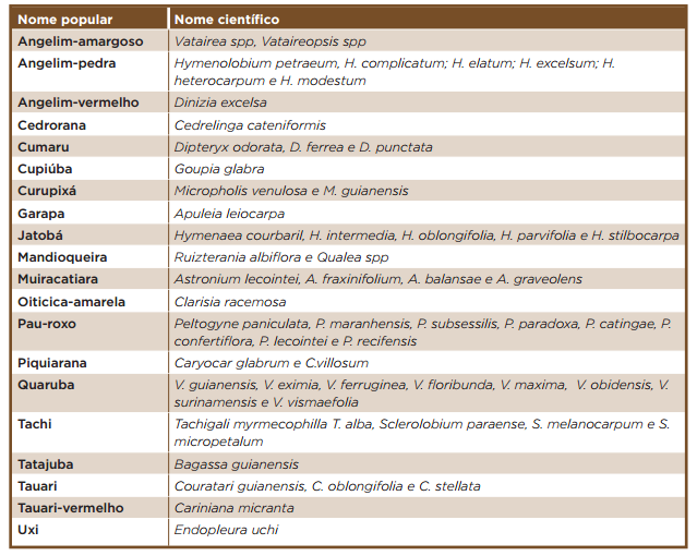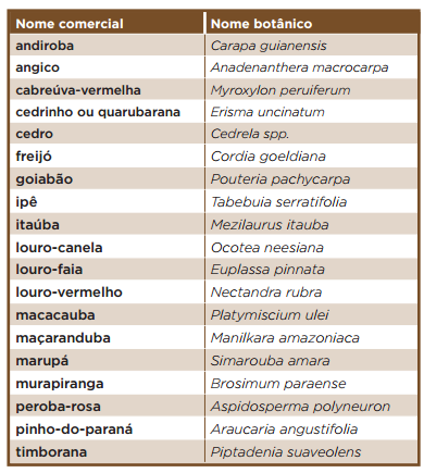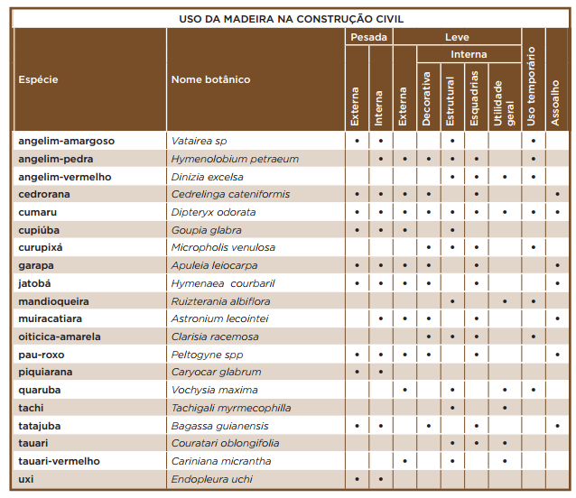 Esta indicação das madeiras selecionadas para cada grupo de usos na construção civil pode ser resumida no seguinte quadro: