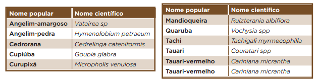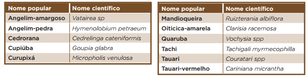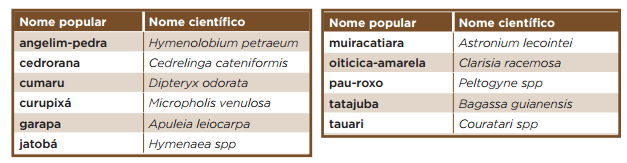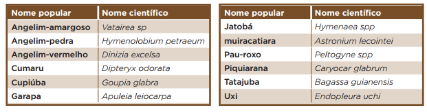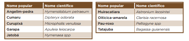 Pode substituir: outras madeiras de uso na construção civil pesada externa e interna, leve externa e interna estrutural, decorativa e de utilidade geral, tais como angelim-pedra, angelim-vermelho, angico, cedrinho ou quarubarana, cupiúba, garapa, itaúba, jacareúba, louro-vermelho, muiracatiara, pau-roxo e tauari.