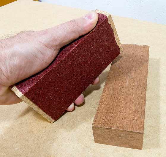 É recomendável ter um pedaço de madeira , para auxiliar durante o lixamento. Além de exercer menos força em sua mão, um toco de madeira bem plano mantém um lixamento igualado na peça final.