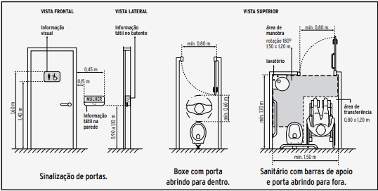 O Decreto nº 5.296/2004 determina que cada pavimento tenha sanitários para pessoas com deficiência.