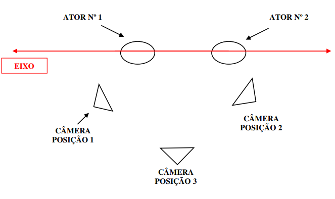 Considere o eixo como a linha sobre os dois que estão contracenando diretamente ou sobre os dois mais próximos da câmera. Mas se houver uma conversa entre muitos serão tantos os eixos quantos os debatedores, porém sempre um a um. Continuísta, assistente de direção e fotógrafo tem muito trabalho nesta hora e todo cuidado será pouco.