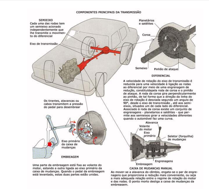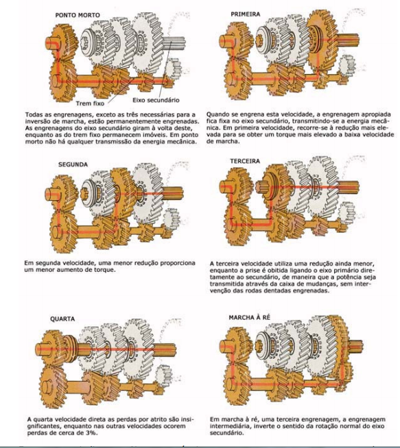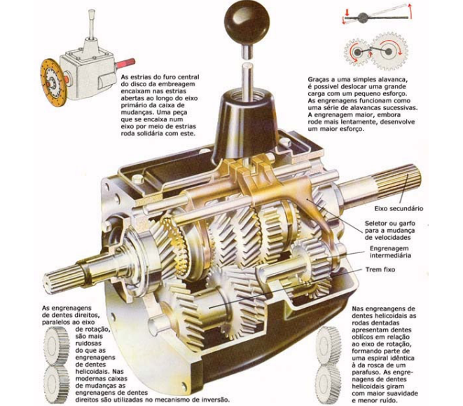 O volante do motor de um automóvel de dimensões médias gira a velocidades que atingem 6000 r.p.m., enquanto a de um veículo esportivo atinge a 7500 r.p.m. Tais velocidades têm de ser grandemente reduzidas antes que a energia mecânica seja transmitida às rodas motrizes que, mesmo a 110 km/h, giram apenas a uma velocidade entre 750 e 1150 r.p.m., isso conforme o seu diâmetro.