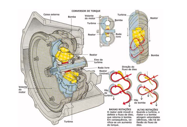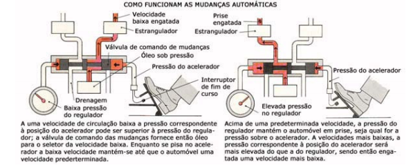 Seleção das mudanças nos diferentes sistemas – Uma transmissão automática seleciona e muda as marchas, conforme necessário, sem intervenção do motorista. Quer dizer: para conduzir um automóvel com câmbio automático, basta selecionar o movimento para frente ou para trás e acelerar. Num automóvel com este sistema de mudanças existem, portanto, apenas dois pedais, um para acelerar e outro para frear.