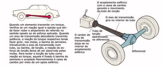 Num eixo totalmente flutuante, existem dois rolamentos entre cada cubo e a bainha do semieixo, que suportam o peso do automóvel e as forças geradas quando este descreve uma curva. Este tipo de eixo é raramente utilizado em automóveis. Reação ao torque (binário/motor) - Quando se transmite esforço de rotação ao eixo de trás por meio de um eixo de transmissão descoberto, a reação ao respectivo torque tende a torcer o eixo nas suas suspensões. Evita-se esta torção introduzido o eixo de transmissão numa bainha de reação que constitui uma extensão rígida da bainha do diferencial.