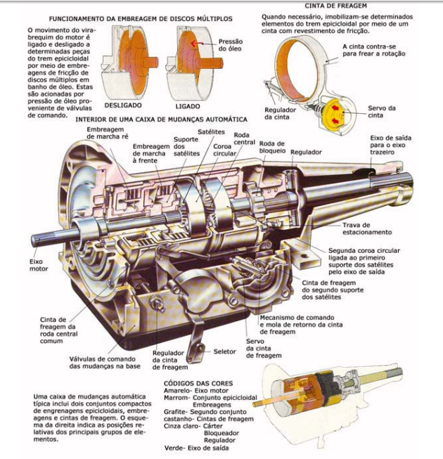 Os diferentes sistemas de transmissão automática apresentam uma grande variedade de bloqueio das engrenagens, sendo a sua seleção comandada, por meio de uma alavanca.