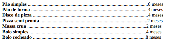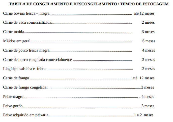 - Congelamento e descongelamento/ tempo de ESTOCAGEM:
