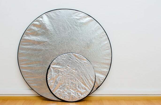 - Já o rebatedor prateado, é muito utilizado em gravações noturnas, pois aumenta o contraste e o brilho das imagens.