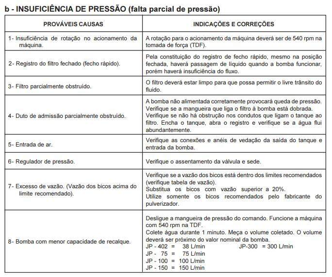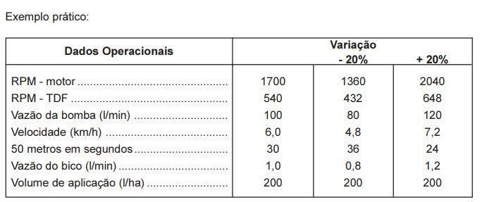 1. se o volume de pulverização for abaixo do desejado, aumente a pressão, diminua a velocidade ou troque os bicos por um de maior vazão.