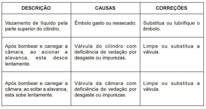 Sempre que ocorrerem problemas nas máquinas JACTO equipadas com bombas de pistão, tente classificá-los em um dos quatro grupos relacionados a seguir: