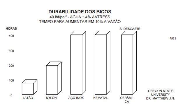 HC (Holow Cone, Kematal) formato do jato em cone vazio e material em kematal, gotas pequenas, ângulo de 90 graus a 45 psi.