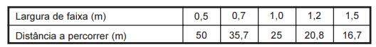 4 - Pulverize numa área de 25 m². Veja abaixo a distância a ser percorrida conforme a largura da faixa de aplicação