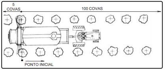 6 - Inicie o movimento do trator no mínimo 5 covas antes do ponto marcado.