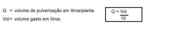 Para citrus, proceda de maneira semelhante, porém, conte apenas 10 plantas e calcule o volume de pulverização através da fórmula: