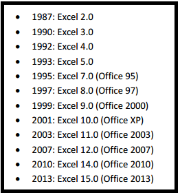 Versões do MS excel para o windows: