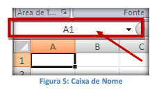 Se selecionarmos a célula C4, por exemplo, teremos na Caixa de Nome, o nome da célula selecionada, ou seja, para o exemplo acima temos que a célula C4 refere-se a célula que está na coluna C e linha 4. Note também que por meio da caixa de nome circulada na imagem acima, é possível identificar também qualquer nome que for dado a uma célula ou grupo de células.