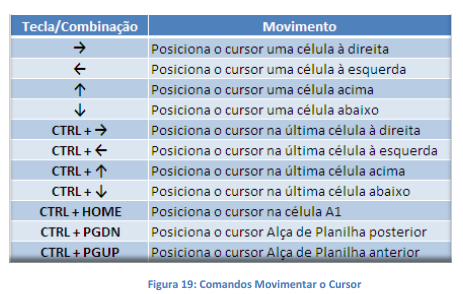 Para digitar e realizar outras operações de edição dentro de uma determinada célula, você precisará movimentar-se entre os espaços da planilha. O cursor dentro de uma folha de planilha poderá ser movimentado de dois modos.