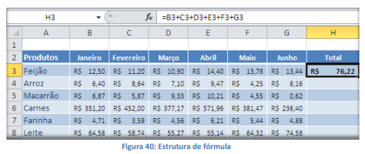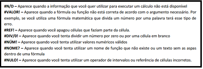 Existe ainda uma enorme quantidade de fórmulas que podem ser inseridas no Excel. Além das fórmulas, que o usuário cria a estrutura inserindo os argumentos necessários, o Excel também trabalha com Funções, que são fórmulas prontas que podem ser digitadas ou inseridas através de um Menu. Posteriormente veremos como trabalhar melhor com fórmulas e funções.