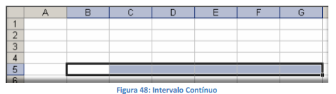 Para selecionar o intervalo rapidamente, basta clicar na seta da caixa de nome e indicar o nome do intervalo desejado. Este recurso será muito útil quando estudarmos fórmulas e funções posteriormente, onde não precisaremos indicar os intervalos, apenas o digitar nome do intervalo dado pelo próprio usuário.