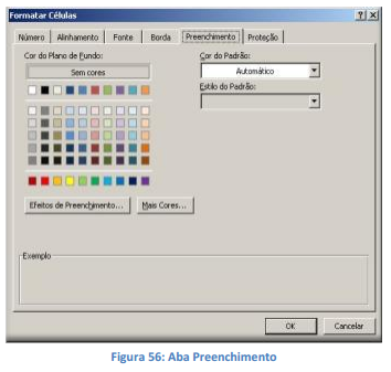 Selecione uma cor de plano de fundo na caixa Cor e um padrão na caixa Preenchimento para formatar a seleção com padrões de cores.