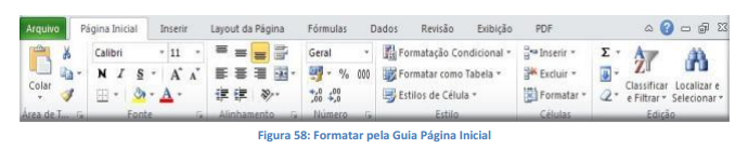 Formatar através da guia página inicial: