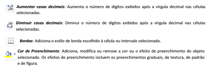 Também podemos formatar utilizando a guia página inicial, pois além das caixas e botões que permitem mudar tipo de fonte, tamanho, cor, estilo e alinhamento, existem alguns botões diferentes dos outros programas do Office como veremos abaixo: