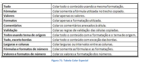 Ao clicar na seta abaixo do botão colar aparecerão algumas formas de colar que pode ser de grande utilidade.