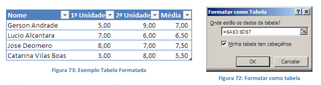 Ao selecionar um desses estilos o Excel solicita duas informações qual o intervalo da tabela e se os dados já possuem cabeçalhos.