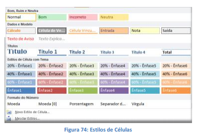 Podemos formatar as células rapidamente escolhendo um dos estilos predefinidos. Também podemos definir novos estilos.