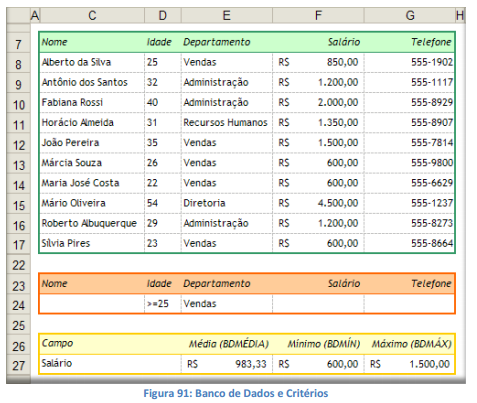 No MS Excel, as funções são organizadas por grupos de acordo com a área especifica como Banco de Dados, Data e Hora, Engenharia, Financeira, Informações, Lógica, Pesquisa e referência, Matemática e Trigonometria, Estatística, Texto e Dados.