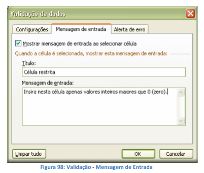 8. Opcionalmente, exiba uma mensagem de entrada quando a célula for clicada.