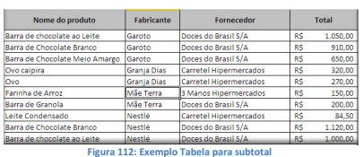 Como são calculados os Subtotais?